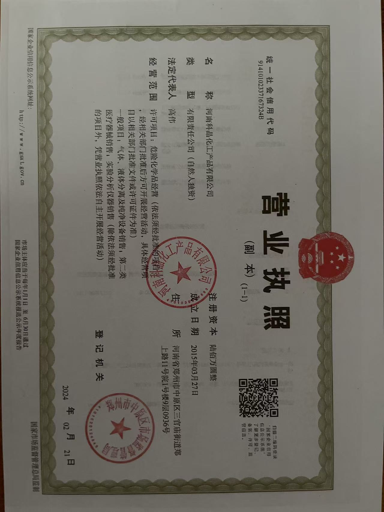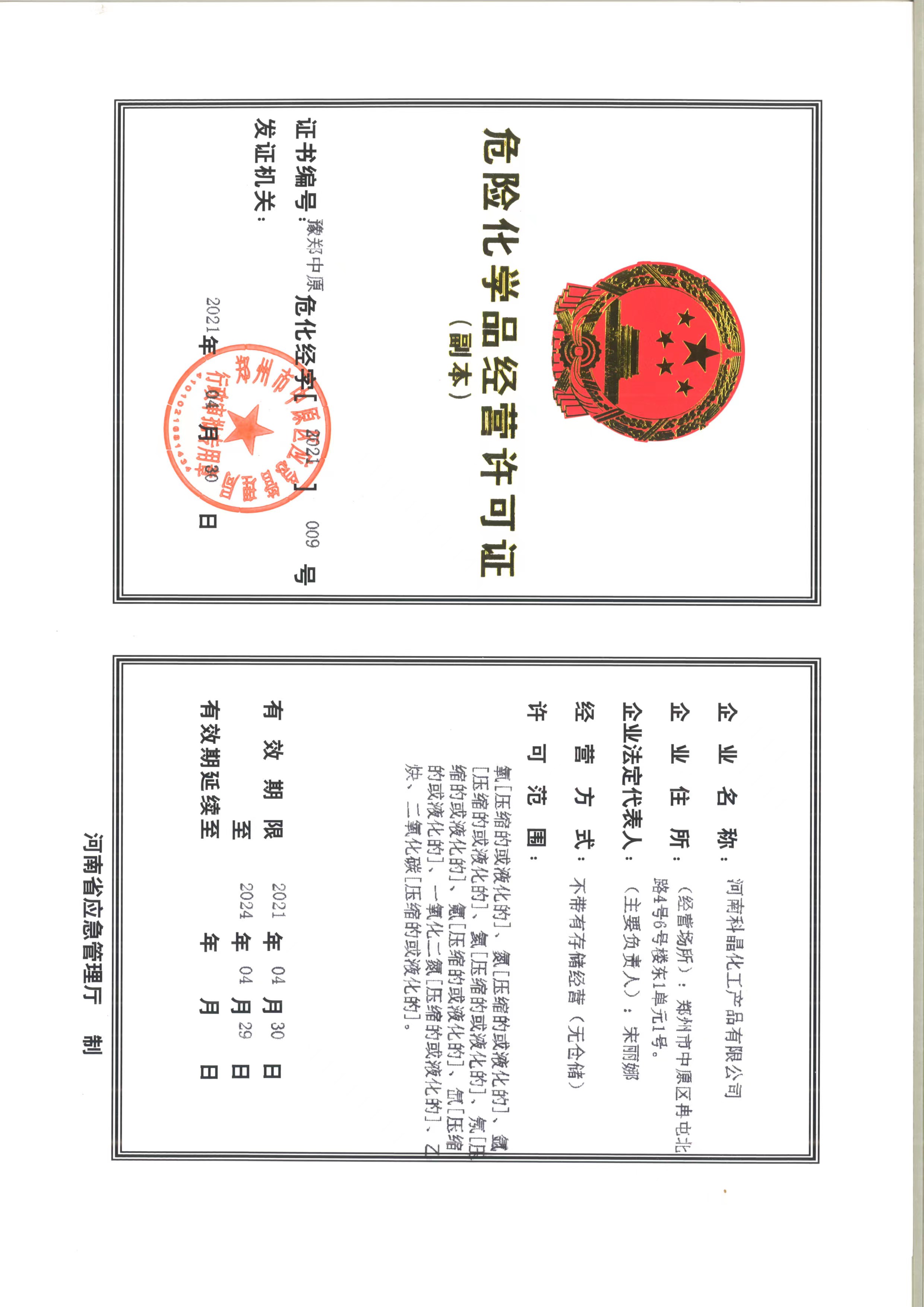 您當前的位置: 河南科晶化工產品有限公司首頁 > 公司資質